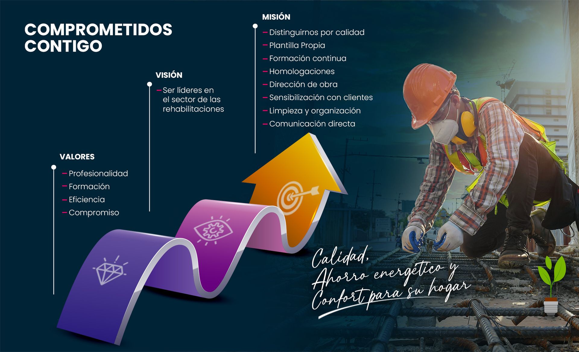Nuestra empresa, está formada por profesionales altamente cualificados, desarrolla una labor de continua evolución y desarrollo, para dar un servicio más ágil y rápido hacia sus clientes, en las áreas de fachadas ventiladas, SATE, cubiertas planas e inclinadas (impermeabilizaciones, arreglos, sustitución), refuerzos estructurales y rehabilitaciones en general.